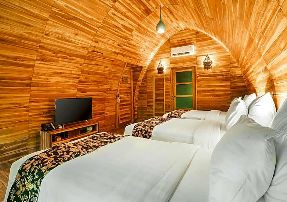 This air-conditioned family room is consisted of of a flat-screen TV with streaming services and a private bathroom. The unit has 3 beds.